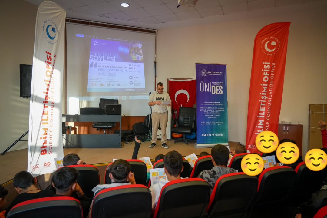 GSB destekli ÜNİDES projesi Kapsamında Üniversitemiz Bilim İletişim Ofisi koordinasyonunda, İngiliz Dili ve Edebiyatı Topluluğu desteğiyle "Bilim Kafe Buluşmaları" kapsamında çocuklara yönelik "Her Çocuk İçin İngilizce" başlıklı etkinlik gerçekleştirildi.