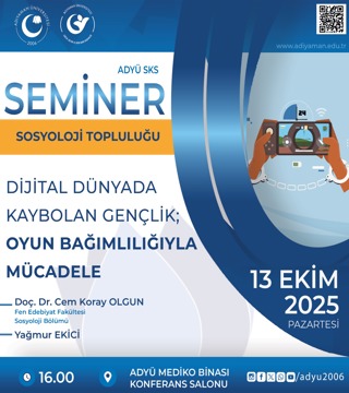 Dijital Dünyada Kaybolan Gençlik; Oyun Bağımlılığıyla Mücadele13Ekim2025 18:00ADYÜ Mediko Sosyal Konferans Salonu