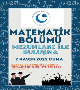 Matematik Bölümü Mezunları İle Buluşma07Kasım2025 20:00ZoomPost Modern Türk Romanında Arayış18Kasım2025 14:00Fen Edebiyat Fakültesi Ahmet Yesevi Toplantı Salonu