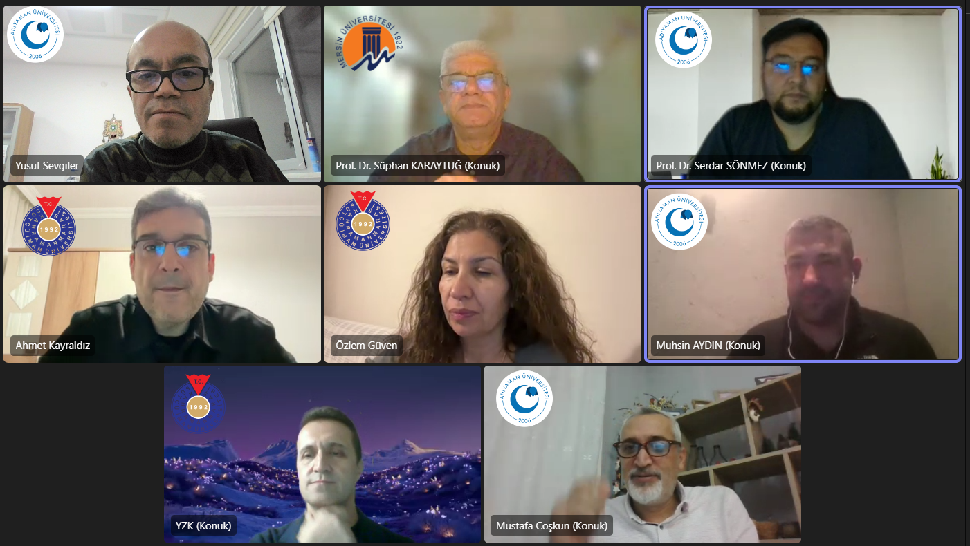 Adıyaman Üniversitesi Fen Edebiyat Fakültesi Biyoloji Bölümü, eğitim kalitesini yükseltmek ve üniversiteler arası iş birliğini geliştirmek amacıyla 19 Kasım 2025 tarihinde çevrimiçi bir dış paydaş toplantısı düzenledi. Yaklaşık iki saat süren bu verimli toplantıya, bölümümüz adına Bölüm Başkanı Prof. Dr. Mustafa Coşkun, Bölüm Başkan Yardımcıları Prof. Dr. Yusuf Sevgiler ve Prof. Dr. Muhsin Aydın ile Öğretim Üyesi Prof. Dr. Serdar Sönmez katılım sağladı. Toplantıda dış paydaş olarak Kahramanmaraş Sütçü İmam Üniversitesi Fen Fakültesi Biyoloji Bölümü’nden Bölüm Başkanı Prof. Dr. Ahmet Kayraldız, Bölüm Başkan Yardımcısı Dr. Öğr. Üyesi Özlem Güven ve Öğretim Üyesi Doç. Dr. Yusuf Ziya Kocabaş; Mersin Üniversitesi Fen Fakültesi Biyoloji Bölümü’nden ise Bölüm Başkanı Prof. Dr. Süphan Karaytuğ yer aldı.