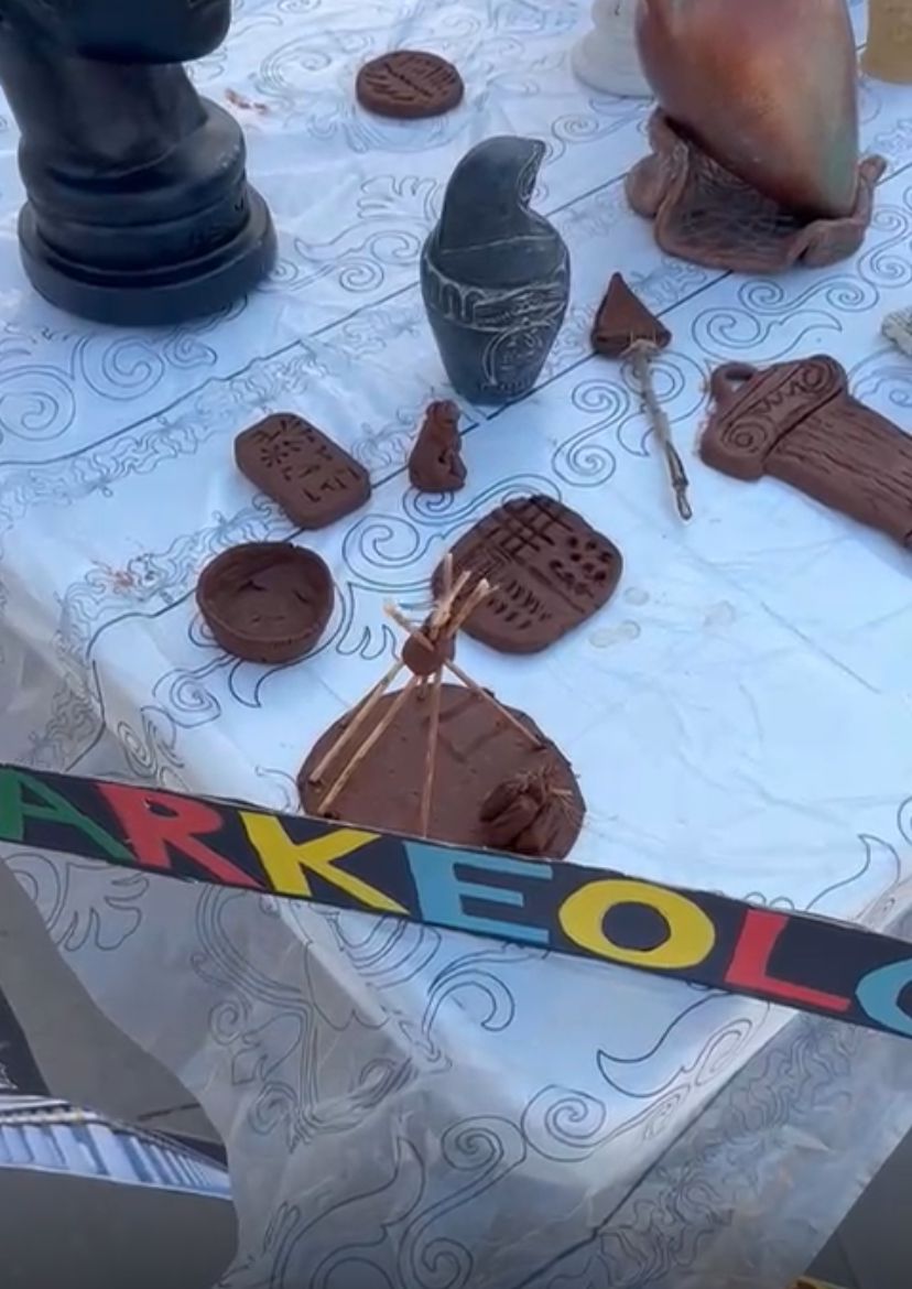 Arkeoloji Bölümü öğretim üyelerinin katılımıyla gerçekleşen etkinlikte, katılımcılar hem arkeoloji hakkında bilgi edindi hem de kil kullanarak geçmiş dönem materyallerini deneme fırsatı buldu. Bu uygulamalı deneyim, öğrencilerin tarihe dokunmasını sağlayarak unutulmaz anlar yaşattı.
