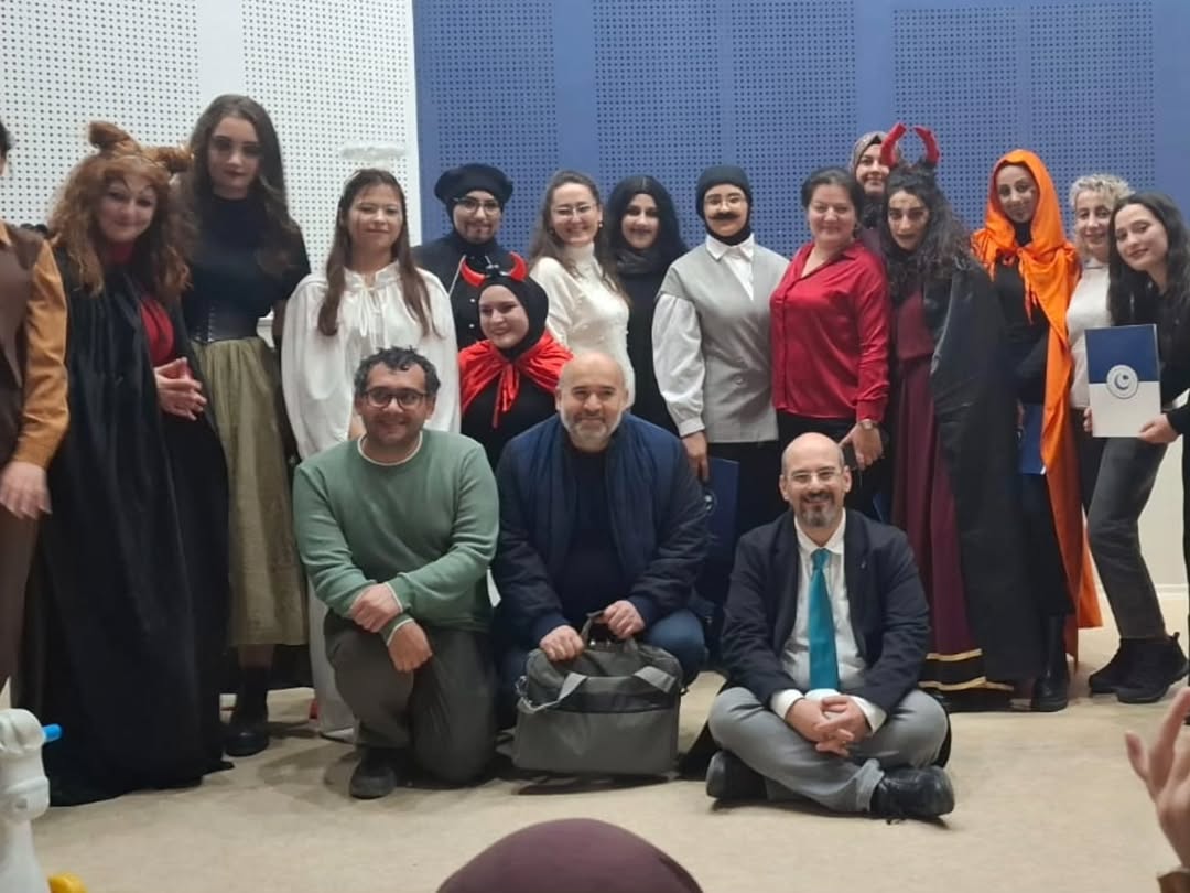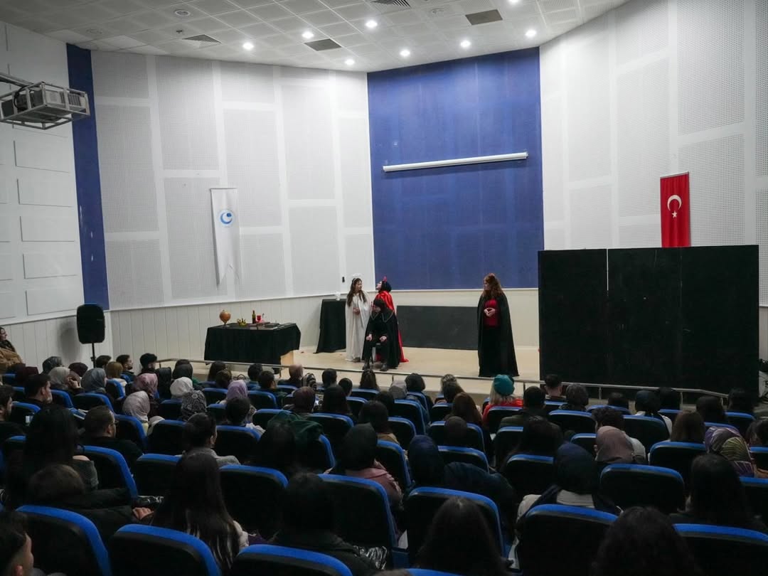 İngiliz Dili ve Edebiyatı Bölümü öğrencileri, derslerde derinlemesine inceledikleri Christopher Marlowe’un Dr. Faustus eserini Türkçe olarak sahneye taşıdı. Böylece akademik bilgi ve kuramsal birikimlerini canlı bir tiyatro performansına dönüştürdüler. Bu çalışmayla bölüm öğrencileri, edebiyat, dramatik yorumlama, sahneleme ve oyunculuk alanlarında edindikleri becerileri uygulamalı olarak sergiledi. Etkinlik kapsamında, Rönesans dönemi İngiliz tiyatrosunun en önemli eserlerinden biri olan Dr. Faustus, üniversite personeline, öğrencilerine ve genel halk kitlesine sunuldu. Bu sayede edebiyatın yalnızca dersliklerde kalmayıp sahne üzerinden de geniş kitlelere ulaşabileceği gösterildi ve klasik eserler güncel yorumlarla yeniden canlandırılarak kültürel erişime katkı sağlandı.
